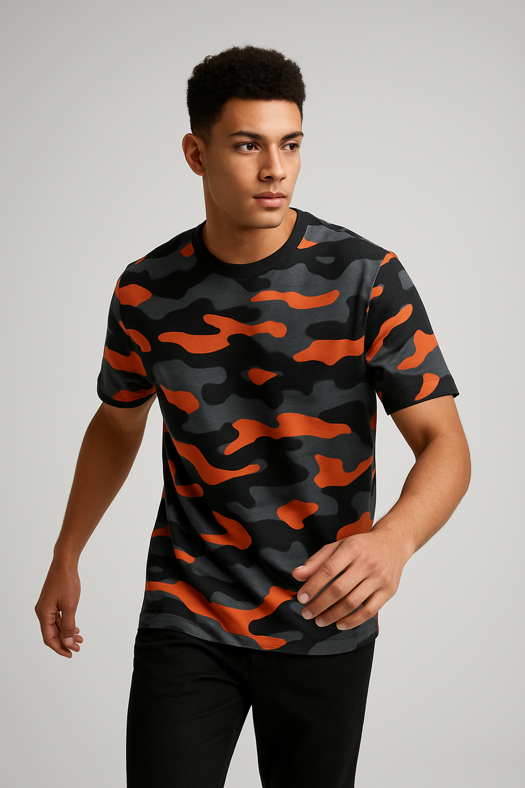 Bring a rugged yet stylish edge to your wardrobe with this Camouflage Print Sublimated T-Shirt by Games Brother. Designed with an all-over camouflage print, this versatile tee works perfectly for casual outings, street wear looks, or outdoor adventures.